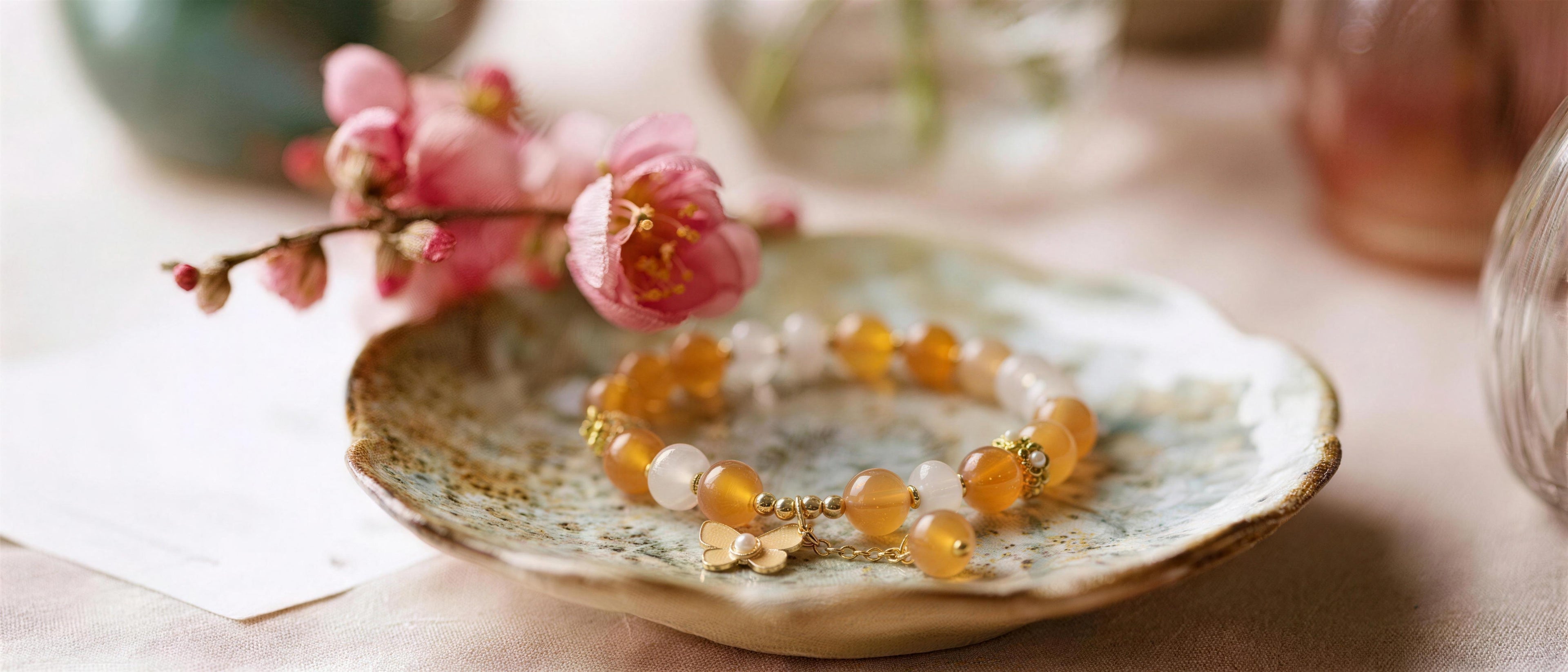 "Amber Dusk Promise" Yellow Agate Bracelet